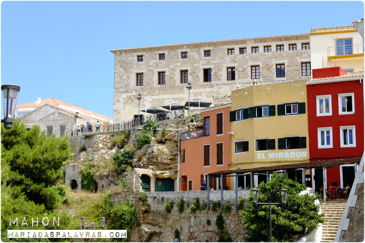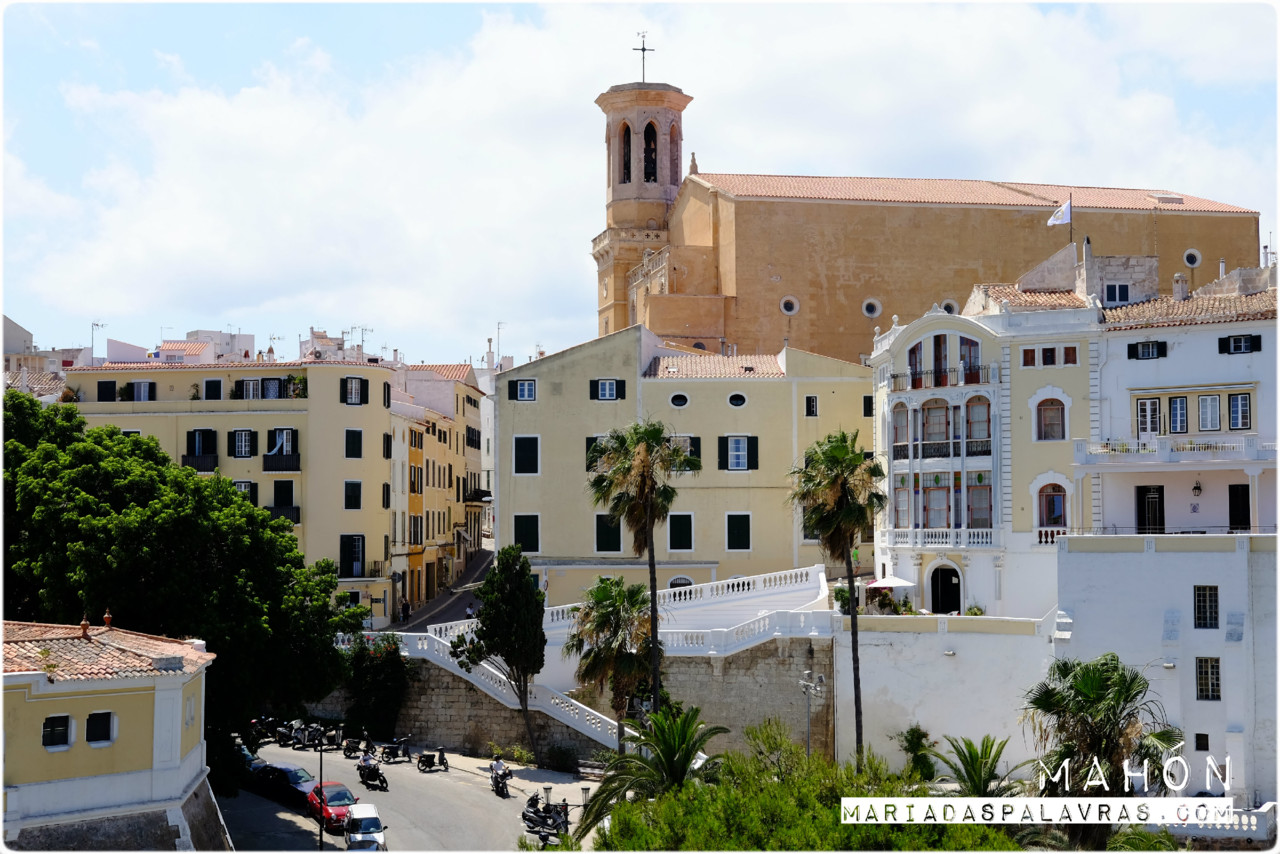 O dia não começou nada bem. Pensei que sim, porque ficámos no deck do barco da Trasmediterranea que nos levaria de Alcúdia (Maiorca) a Ciutadella (Menorca). O carro alugado ficou bem estacionado (gratuitamente, como em quase todo lado em Maiorca.Foram 30€ de ida e volta, mas era uma viagem de um par de horas no máximo ao sol, a cortar o mar. Só que foi muito mais do que isso. O barco levou pelo menos uma hora a mais e o quando chegámos o carro alugado também estava atrasado e era praí meio-dia quando começámos a passear. Começámos? Mais ou menos, porque a primeira paragem era Mahón, a capital, na outra ponta: e havia trânsito do demo por causa de obras na única estrada que liga as duas metades da ilha!