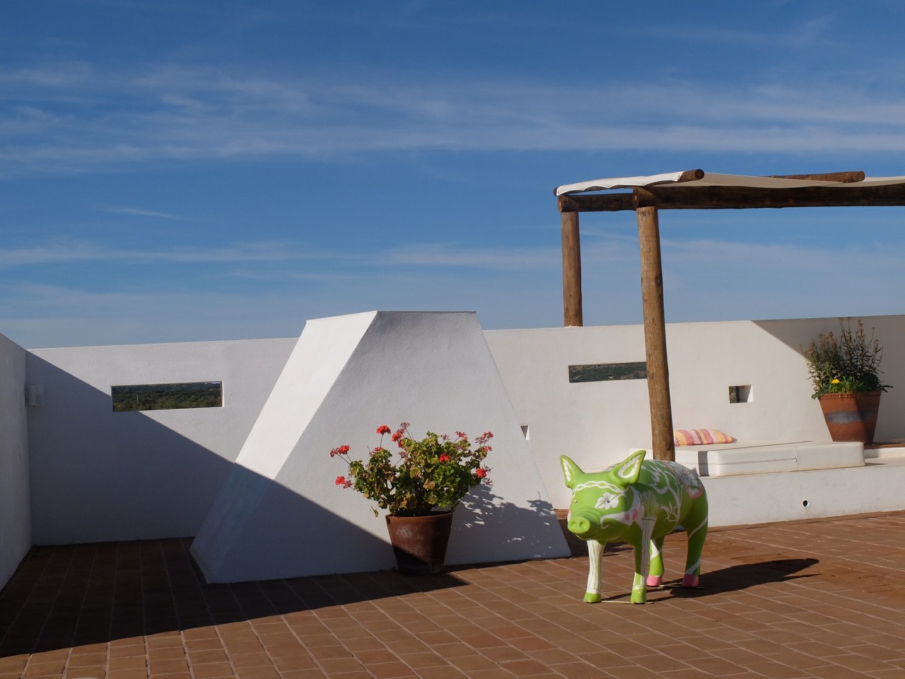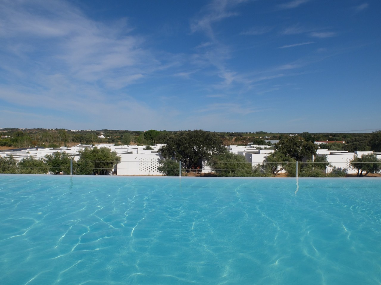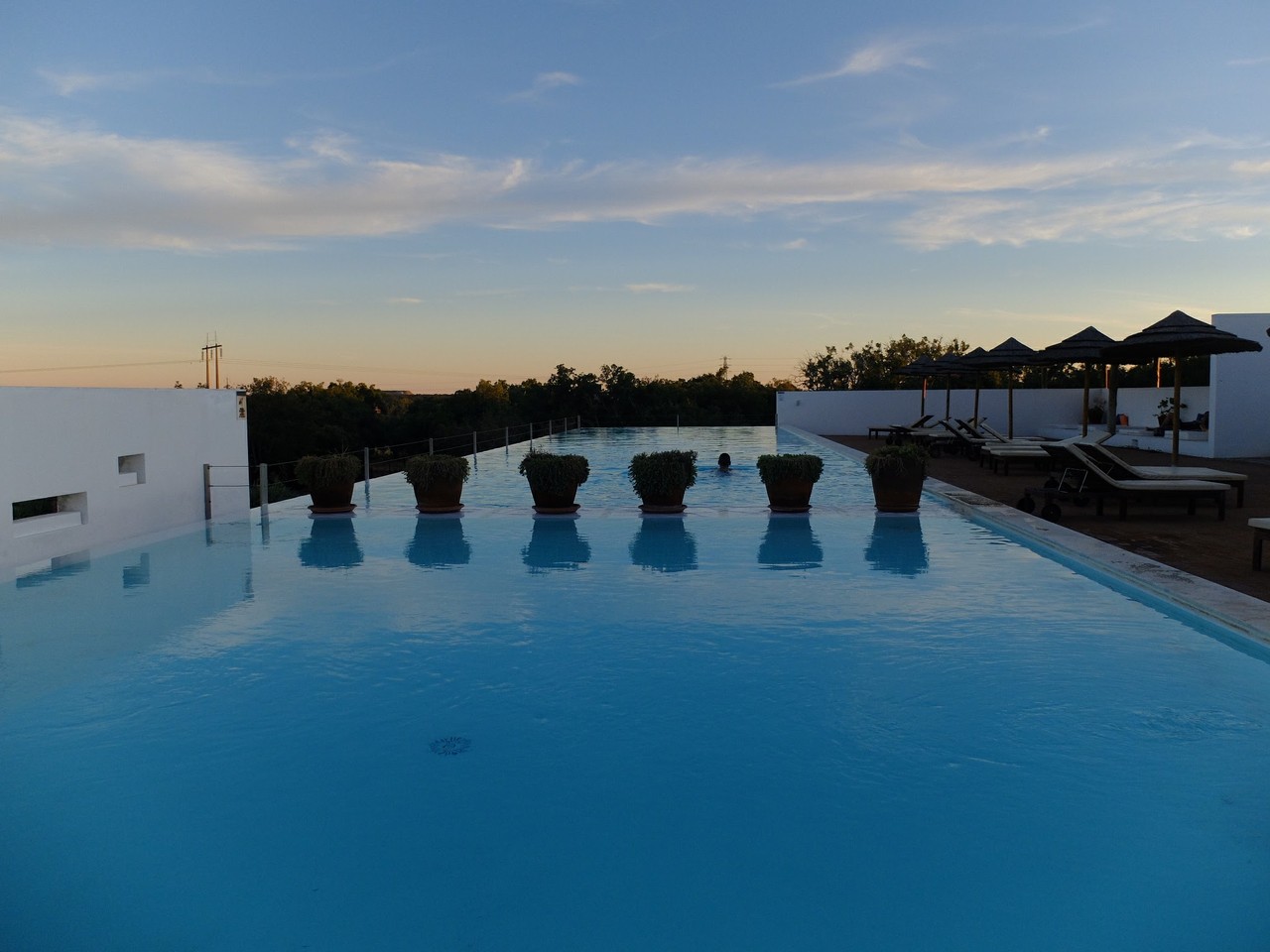 A área da piscina do terraço. Linda! Com espreguiçadeiras confortáveis e caminhas de praia. Uma piscina maravilhosa com vista sobre o alentejo. E o apoio de um bar com gelados da Olá. Isto ao pé de amigos é tudo o que se quer da vida.