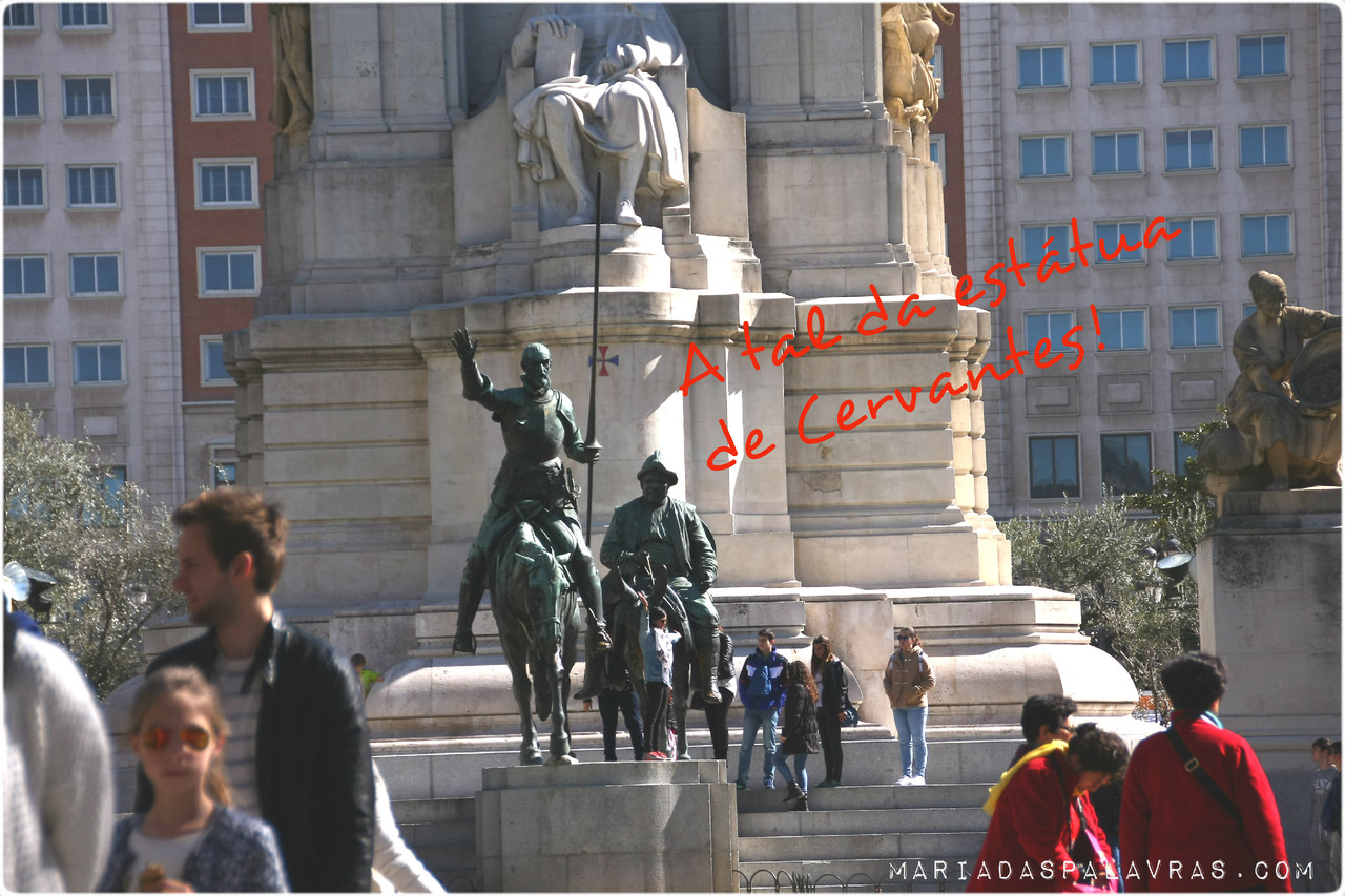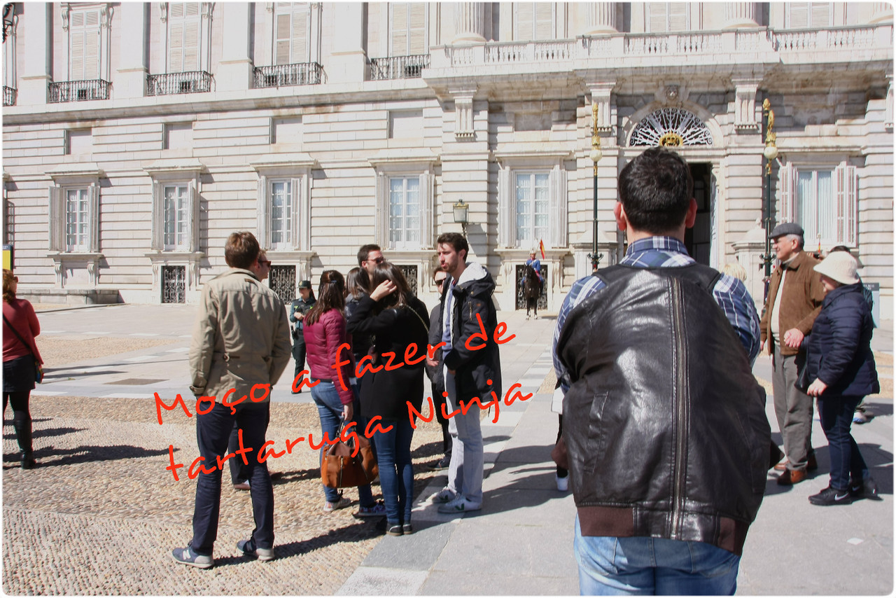 Imaginasse eu que era tudo assim tão perto e tínhamos marcado uma viagem de um dia só (mentira). Saímos então na Praça de Espanhaonde tirámos a primeira selfie e passámos sem reparar naquela que mais tarde percebemos (nas fotos) que era a estátua de Cervantes com Dom Quixote e Sancho Pança. Na Praça de Espanha começa a Gran Via, a artéria mais movimentada da cidade, mas por ora íamos ignorá-la. Recuámos até ao Templo de Debod sem esquecer o miradouro e desviámo-nos para o Pálácio Real, passeando pelos seus jardins, até à Catedral de La Almudena. Não entrámos em nenhum do sítios que estavam minadinhos de gente (muito mais que a Padaria Portuguesa à hora do pequeno-almoço), mas tirámos muitas fotos. Nesta altura a força do sol fazia-se sentir e o Moço tirou o casaco. Eu encaixei-lho em cima da mochila para não ter de o carregar e assim nasceu uma tartaruga. Vejam a galeria de fotos abaixo, clicando nas setinhas (e sem descurar as legendas).