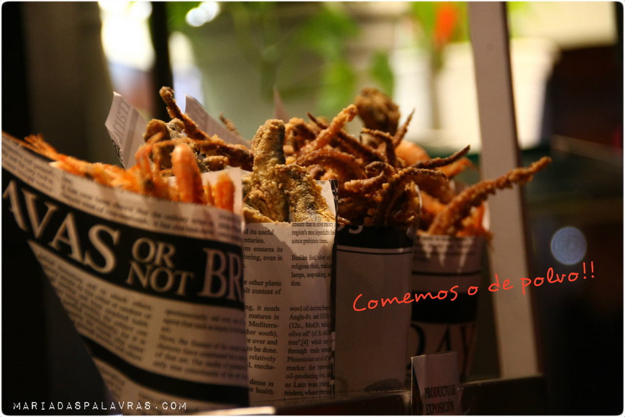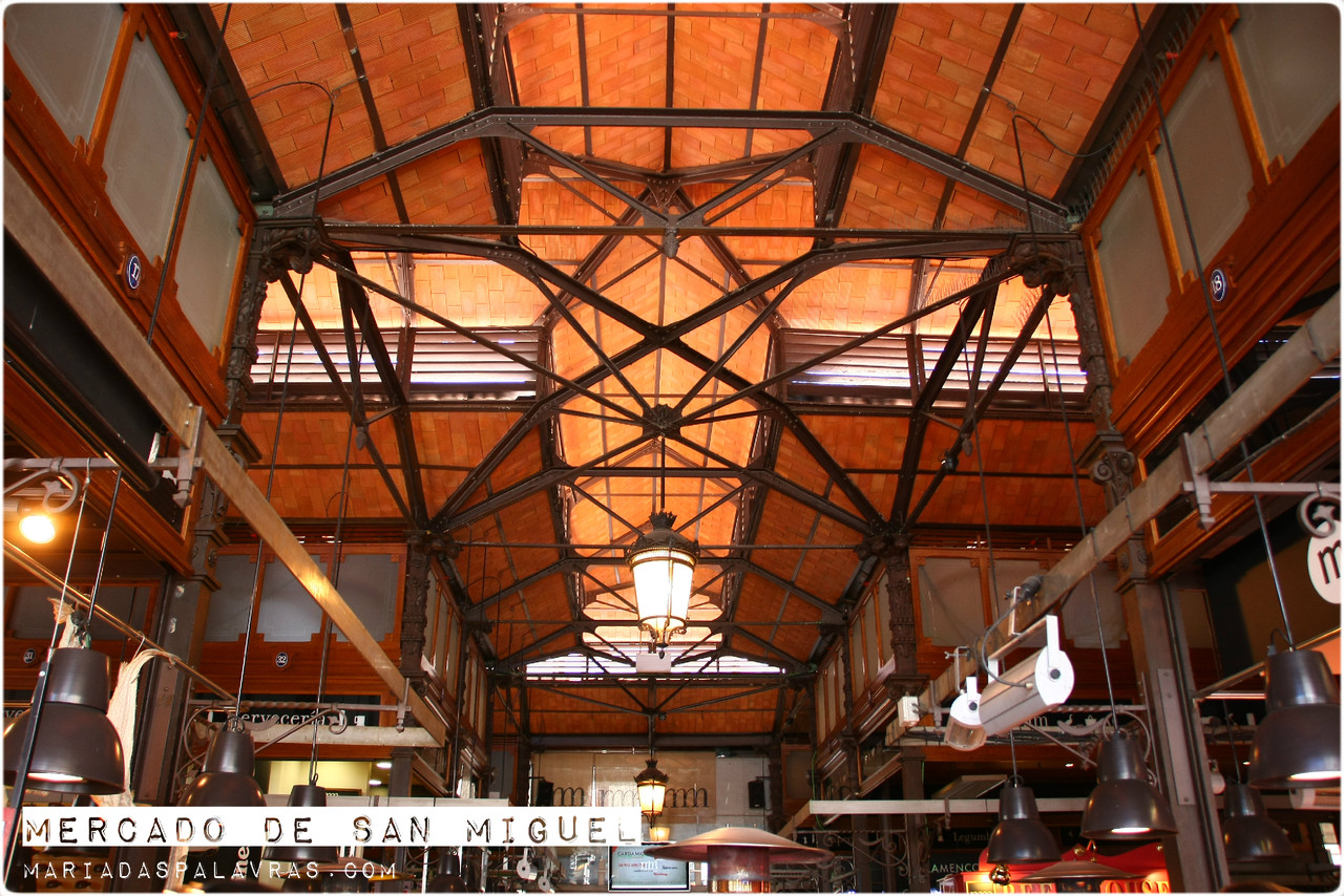 Seguimos por umas ruas à direita, na direção de uma zona menos monumental, mas mais bonita (que ainda não tínhamos a certeza o que era) e deparámo-nos com o mercado de São Miguel. Já começava a ser hora de almoço e nós tínhamos comido há para lá de muito tempo. Resolvemos bem o assunto e o difícil foi escolher entre tantos petiscos (e navegar entre tanta gente). Começámos com uns croquetes de presunto e roquefort (que eram só mais-ou-menos). Depois comemos um cone de polvo frito. Péssimo de tão bom. E rematámos com os morangos mais deliciosos que provei este ano. E digo-vos outra vez: vejam a galeria de fotos abaixo, clicando nas setinhas.